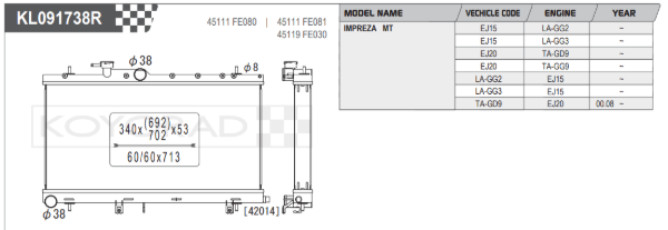 Koyorad Performance Aluminium Radiator - Subaru Legacy GG2/3/9 00-05 (53mm Core)