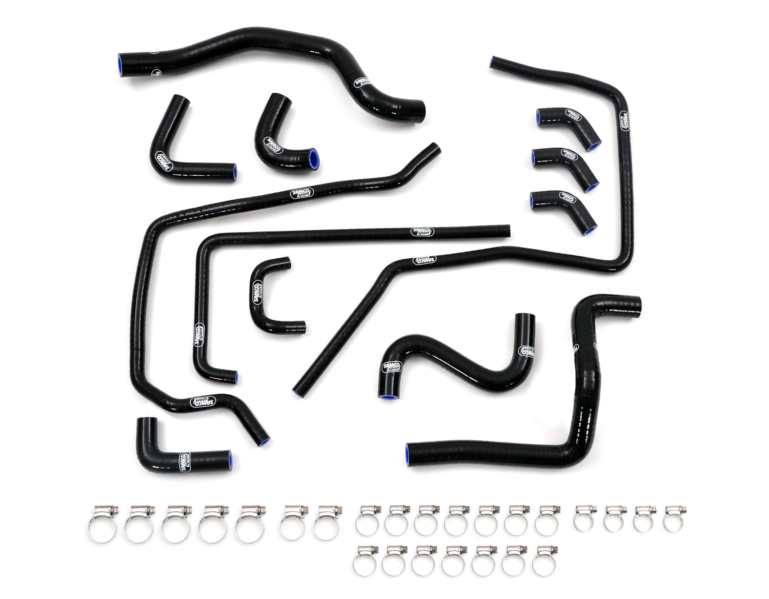 This Samco coolant hose kit includes x13 hoses and x26 stainless steel hoses clamps. Kits are available from stock in red, blue, black and matt black. Custom coloured kits are also available to order if required.