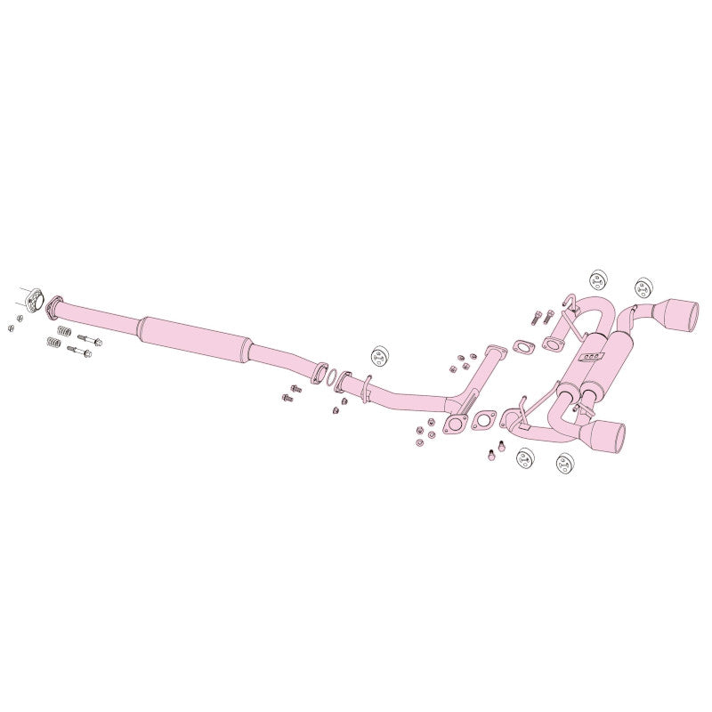 Tras numerosas pruebas e investigaciones, se ha elegido la ruta más directa y eficiente para mejorar el flujo y ofrecer el mayor aumento posible de potencia y par. Al igual que con todos los sistemas de escape de Fujitsubo, se utilizan bridas moldeadas a presión ligeras, soportes de tubos huecos y soldadura TIG para aumentar la resistencia, reducir el peso excesivo y mejorar la durabilidad general. Se utilizan juntas tipo donut para mejorar la flexibilidad del sistema.