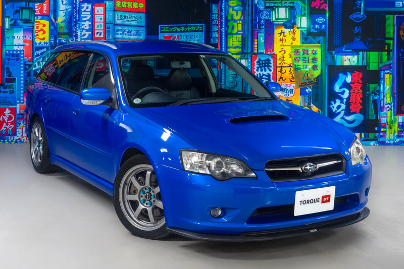This fresh import, 2005 Legacy GT WR Limited Edition is a high quality grade 4 example. Sitting on a set of 17 inch Rays Gram Lights and Tein coilovers, it is the ultimate all rounder with the perfect balance of comfort and capability.