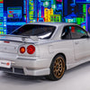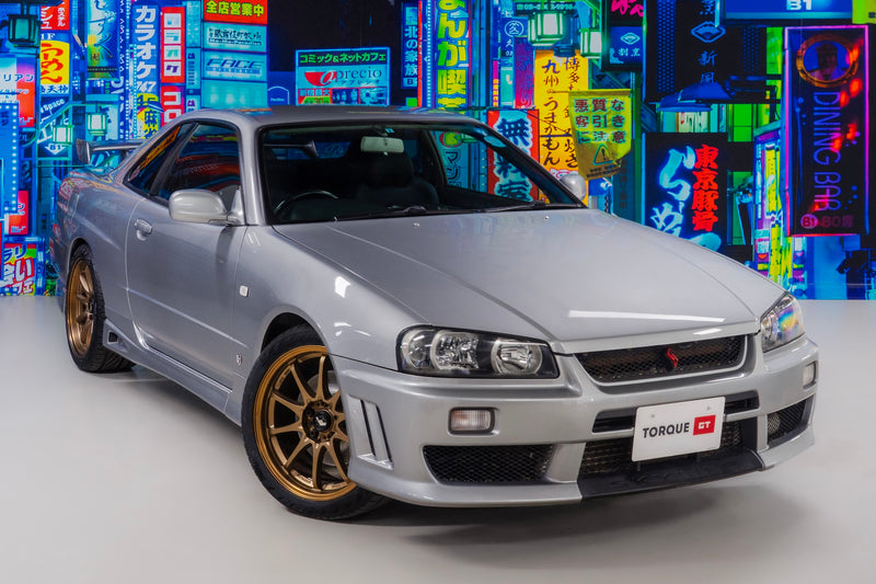 The Nissan R34 GT-T is often considered the baby brother to the legendary GT-R. Fitted with the RB25DET engine, the GT-T features a rear-wheel-drive layout and a single turbo. A turbocharged straight-six paired with a manual 5-speed gearbox… sounds like the perfect recipe for some serious driving fun.